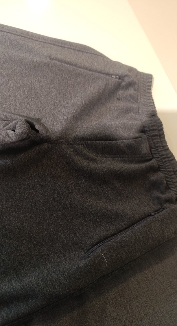 Gri renkte, fermuarlı cepleri olan bol kesim erkek eşofman altı. Yumuşak sentetik kumaştan, rahat günlük ve sokak stili için uygun. ♂️