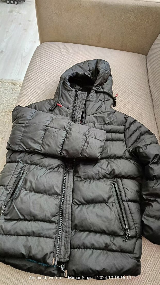 Fermuarlı, uzun kollu, gri renkte, yumuşak ve sıcak kumaştan yapılmış, normal midi uzunlukta, günlük kullanıma uygun erkek mont. Notlu yaka ve dar kesimlidir.