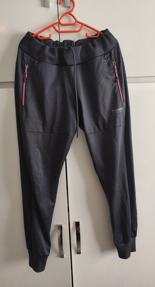 Fermuarlı cepleri ve sentetik kumaşıyla gri, dar kesim kadın eşofman altı. Spor ve sokak stili için uygun, normal boyda. ♀️