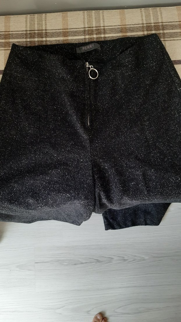 Fermuarlı ön kısmı ve hafif ışıltılı, yumuşak ve rahat kumaşıyla gri mini şort, günlük kullanım için uygundur. ✨ KIŞLIK RAHAT BOL KESIM M BEDEN YENI GIBIDIR