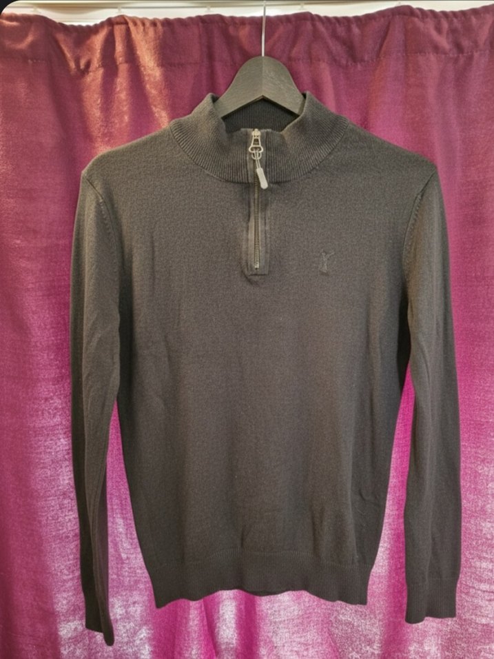 Fermuarlı yüksek yakalı, uzun kollu ve ince kesimli gri erkek kazak. Rahat sentetik kumaştan, günlük sokak stiline uygun düz tasarım.