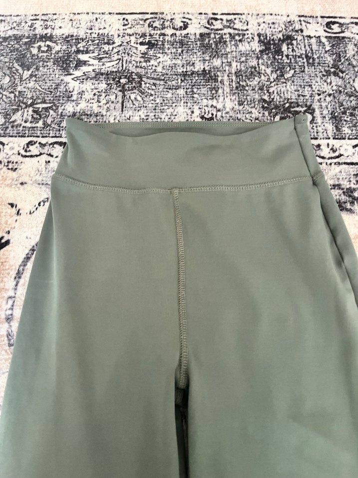Fermuarlı detaylı, haki renkli, sentetik kumaştan yapılmış, midi boy ve sade tasarımlı kadın tayt. Günlük rahat sokak stili için uygundur. ♀️