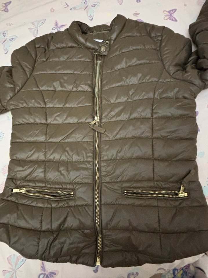 Kahverengi, fermuarlı ve dar kesim kadın mont. Notlu yaka ve normal midi boyda, sentetik kumaştan rahat sokak stili için uygun.