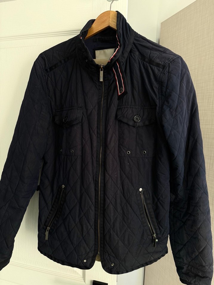 Fermuarlı ön cep ve keskin yaka detayına sahip, ince kesim uzun kollu erkek mont. Lacivert renkte. Orijinal marka , defosuz uzun yıllar giyilir