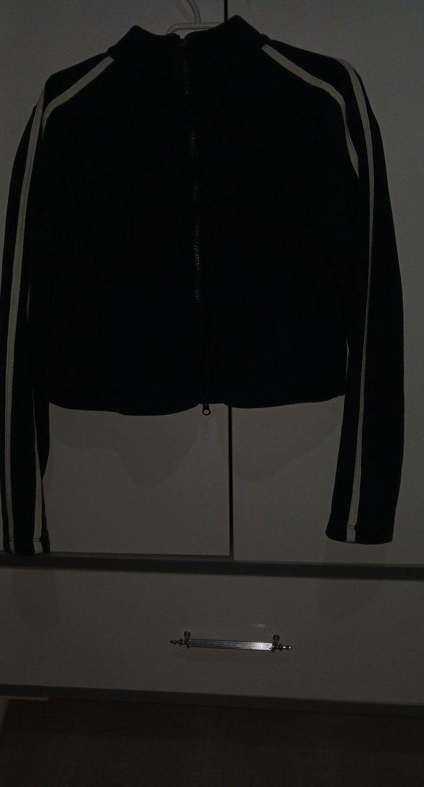 fermuarlı, yüksek yakalı ve uzun kollu kadın ceket. Yumuşak kumaştan, spor ve günlük stil için uygun. lacivert
