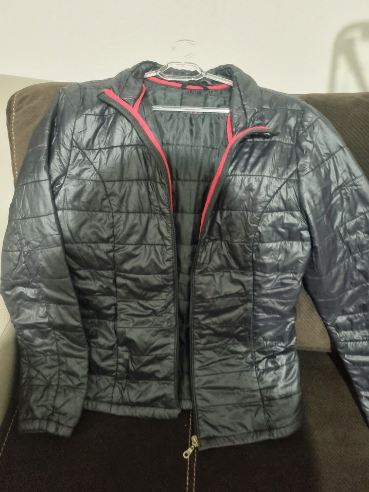 Fermuarlı, uzun kollu, kadın gri spor ceket. Notlu yaka ve normal midi boyda, sentetik kumaştan, günlük kullanıma uygun trendy tasarım.