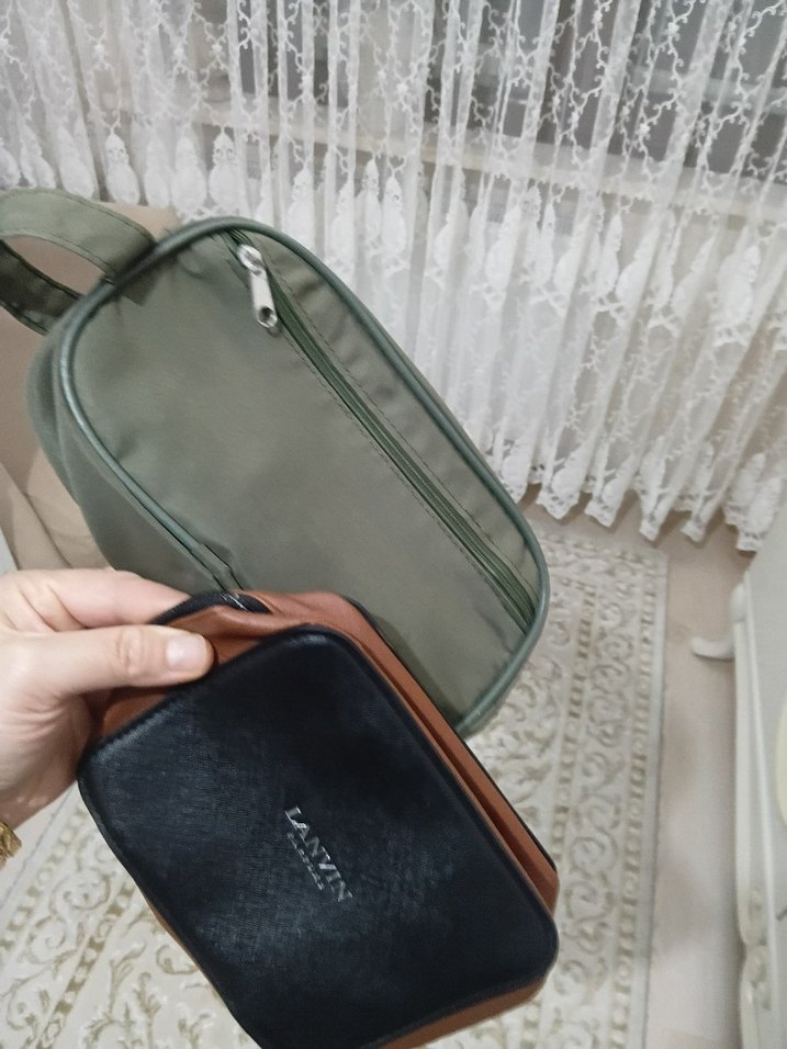 Kadın makyaj çantası, fermuarlı ve deri malzemeden üretilmiştir. Düz haki renkte, minimalist ve sokak tarzına uygun, günlük kullanım için idealdir.