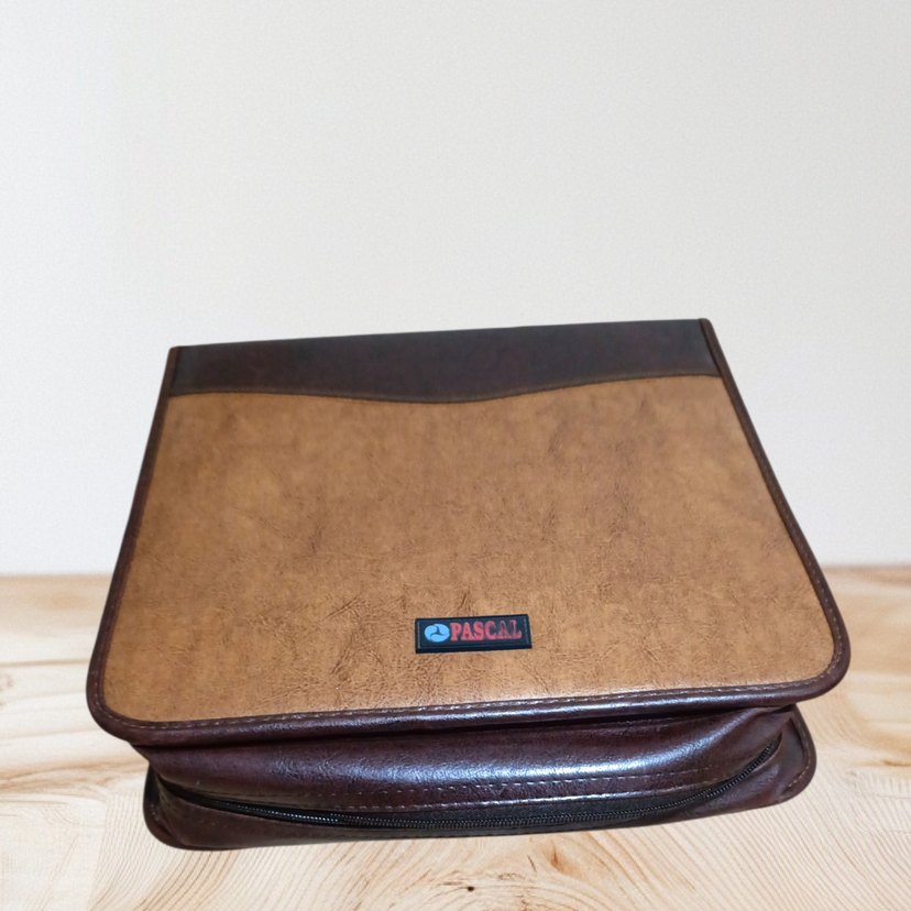 240 CD kapasiteli kahverengi, fermuarlı Deri Cd çantası. Düz ve temel tasarıma sahip, iş kullanımı için uygun. "PASCAL" markalı.