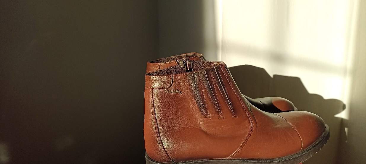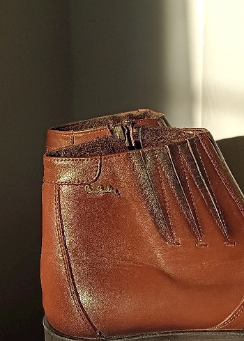 Kahverengi parlak deri bot, dolgu topuklu ve fermuarlı. Klasik tarzda, günlük kullanım için uygun.