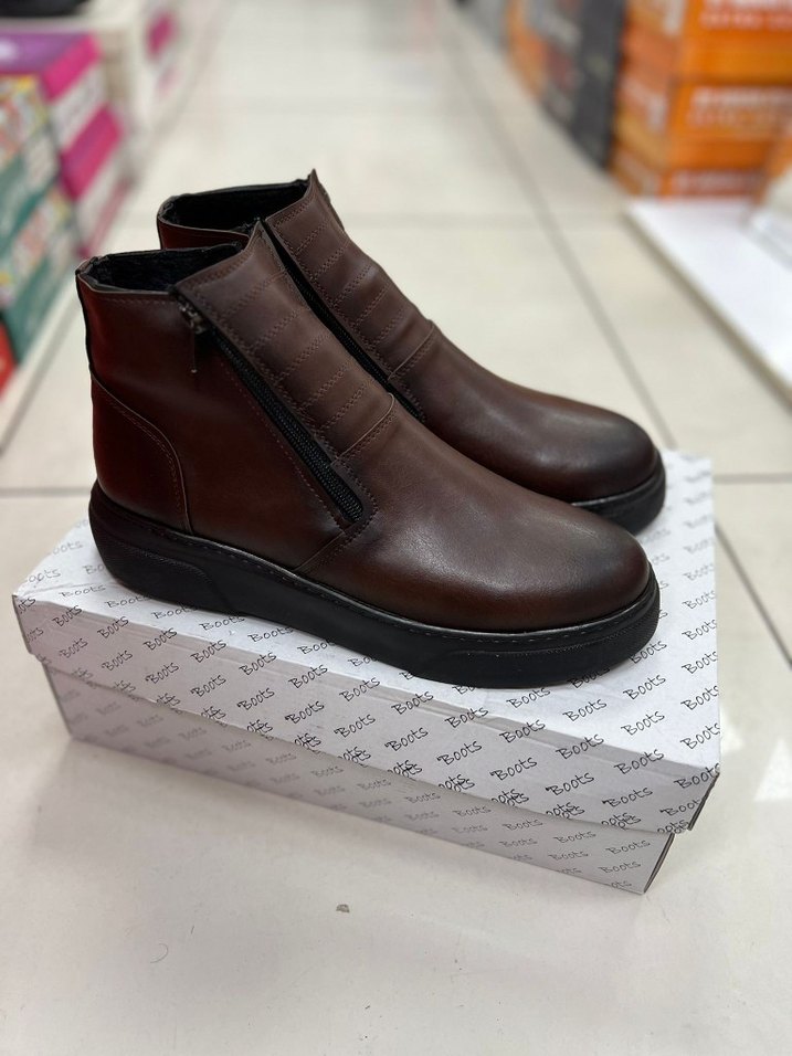 Fermuarlı Kahverengi Deri Erkek Bot