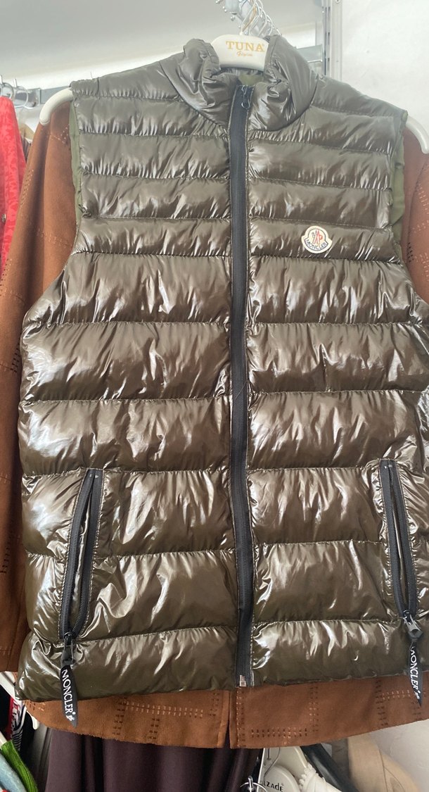 Fermuarlı, yeşil deri yelek, kolsuz ve kesimi vücuda oturur. Düz ve parlak yüzeye sahip, günlük rahat tarz için uygundur.