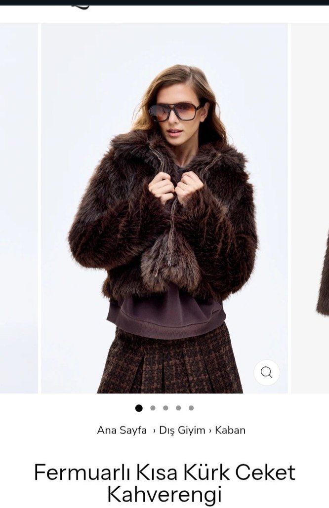 zara muadili Quzu marka Kahverengi kürk ceket, fermuarlı, notched lapel yaka ve uzun kolludur. Rahat kesimi günlük sokak stiline uygundur. yeni etiketli urun 2900 almistim hic kullanmadim