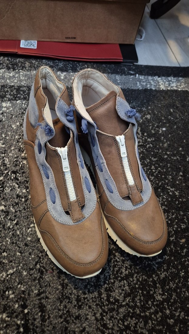 Kahverengi ve gri renklerde, fermuarlı ön kısmı ve desen içermeyen tasarımıyla sokak stili için uygun erkek botu. orıjinal