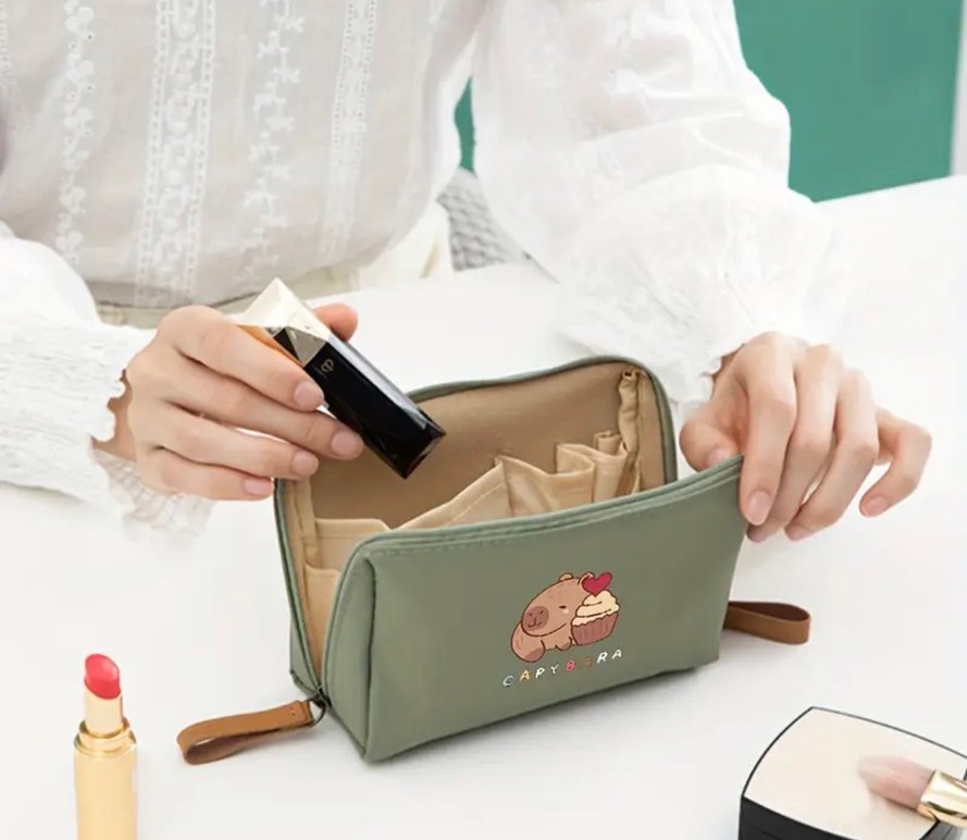 Fermuarlı Kapibara Desenli Kadın Makyaj Çantası