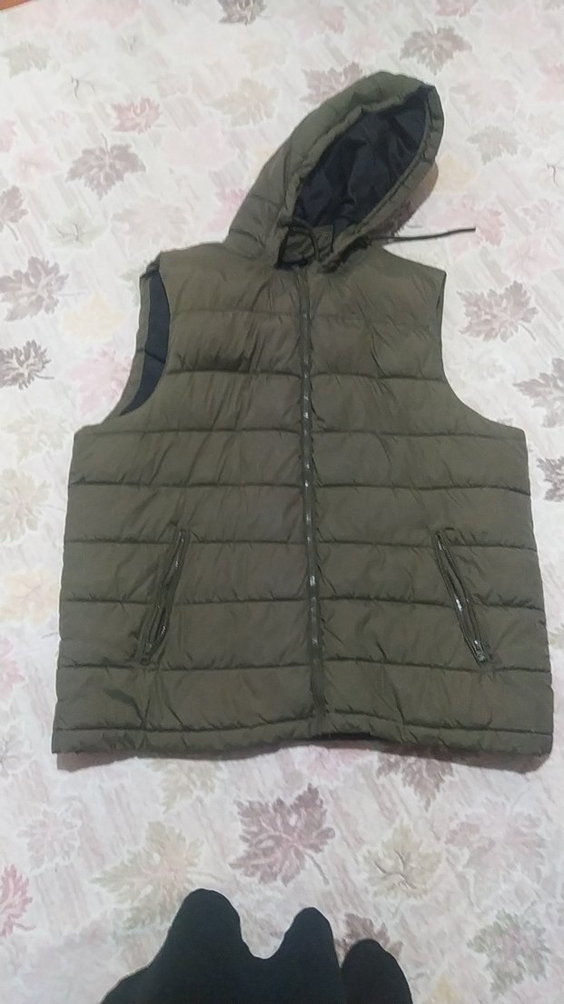 Fermuarlı Kapüşonlu erkek yeşil Yelek
