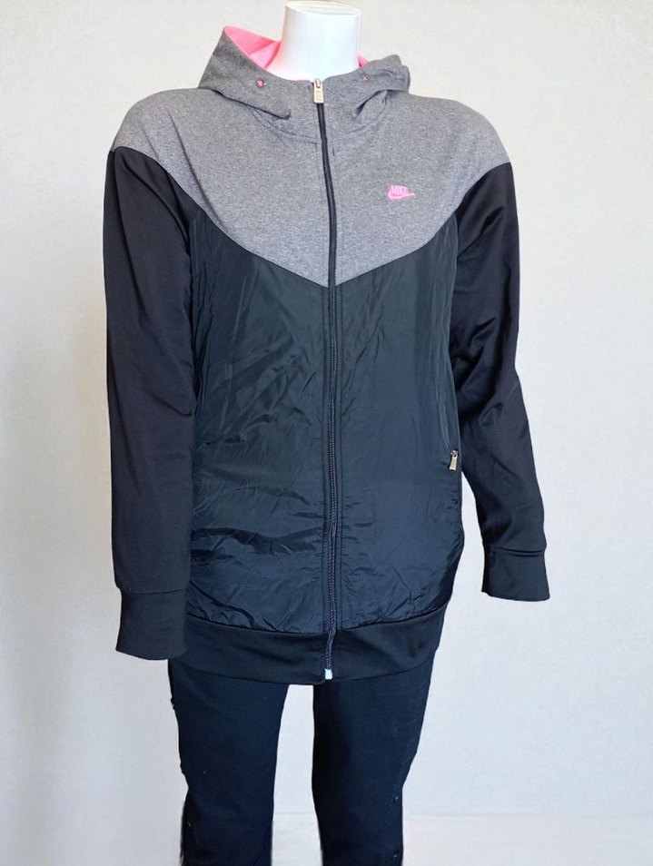 Fermuarlı, kapüşonlu Nike kadın eşofman üstü/mont. Spor ve sokak tarzı için uygundur.XL beden..En 50 cm Boy 70 cm..Sağ cebinde fermuar atması var elden geçip yapılması lazım.Son fotoğrafta belirtildi fiyata yansıtıldı..