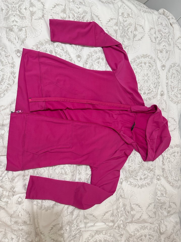 Fermuarlı ve kapüşonlu, pembe renkli kadın hırkası. Yumuşak ve sıcak kumaştan, uzun kollu ve normal boyda, günlük sokak stili için uygundur. ✨