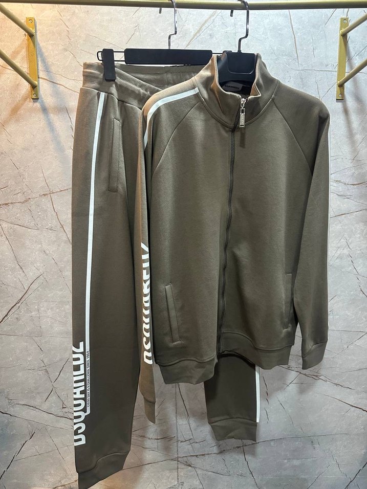 fermuarlı, uzun kollu ve kapüşonsuz eşofman takımı. Kahverengi ve şerit detaylı, rahat kesim ve yumuşak dokulu kumaştan üretilmiştir. ♀️
