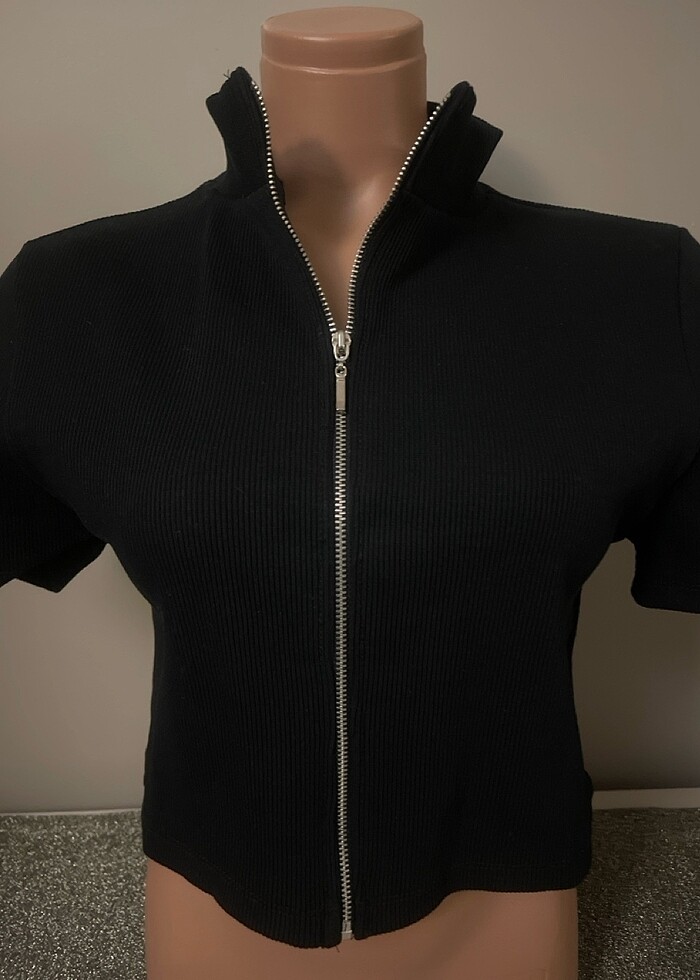 Fermuarlı kaşkorse crop kısa kollu üst L