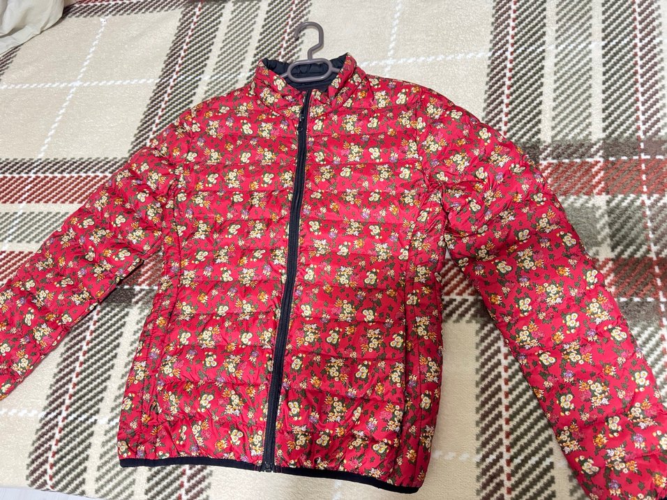 Fermuarlı Kırmızı Çiçek Desenli Kadın Ceketi