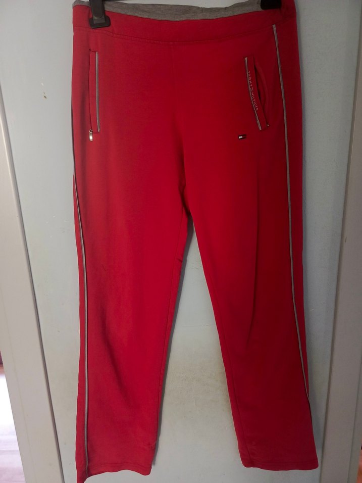 Fermuarlı cepleri ve parlak yan çizgileri olan kırmızı dar kesim spor pantolon, yumuşak ve sıcak kumaştan üretilmiştir, günlük spor ve sokak stili için uygundur. ♂️