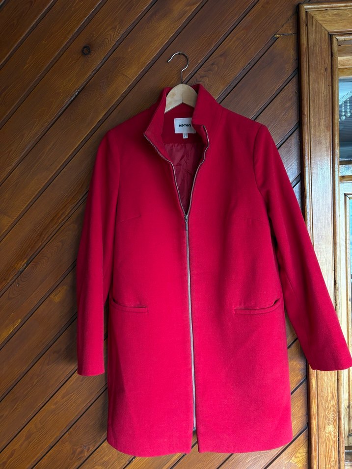 Fermuarlı ve iki yan cepli kırmızı kaban