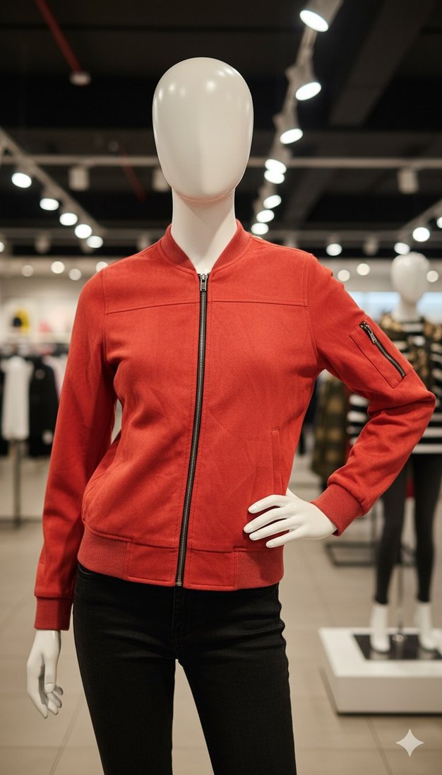 Fermuarlı Kırmızı Kadın Spor süet Ceket