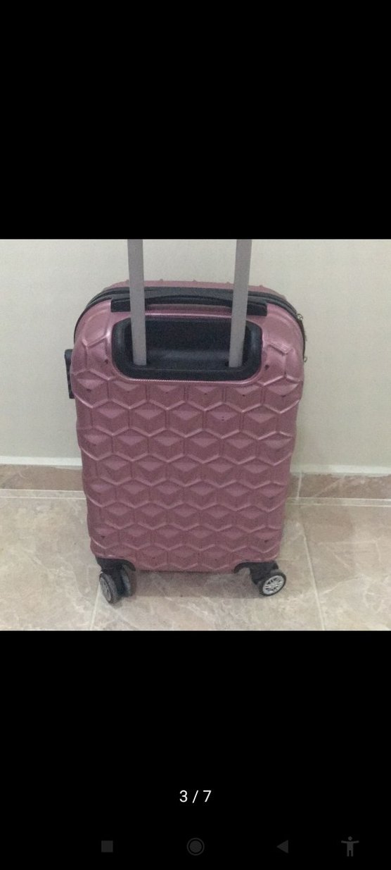 Erkek valizi, koyu pembe yılan desenli ve fermuarlı kapamalıdır. Minimalist, çağdaş tasarıma sahip, dayanıklı dokulu yüzey ve kolay dönen tekerlekleri vardır. astar sökük var uyguna veriyorum