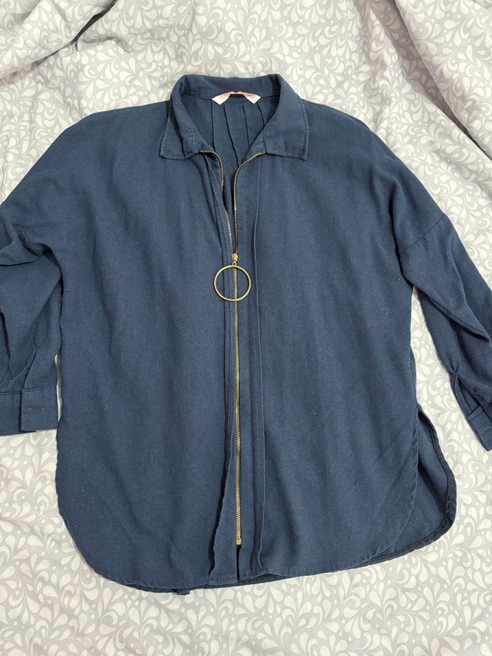Fermuarlı lacivert Kadın Gömlek