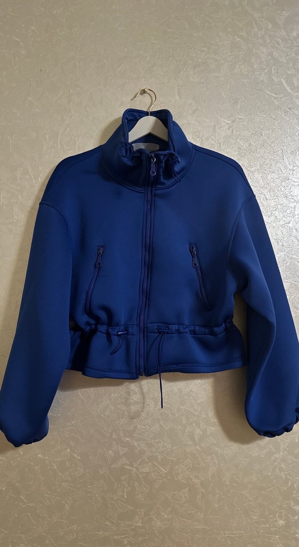 Fermuarlı cep detaylı, yüksek yakalı, dalgıç kumaş ,uzun kollu, lacivert kısa kesim kadın ceket. Ufak bi kaçması var onu da ekledim görsele Yumuşak ve sıcak kumaştan, günlük şık sokak stiline uygun.