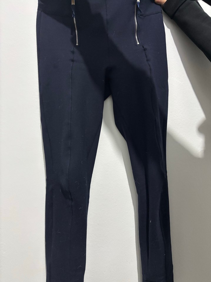 Fermuarlı detaylara sahip, normal boy midi kesim, lacivert kadın kumaş pantolon. Sentetik kumaştan, ofis ve sokak stili için uygun, şık ve rahat. Orjinal mağazasından alınmış ipekyol marka 36 beden yüksek bel