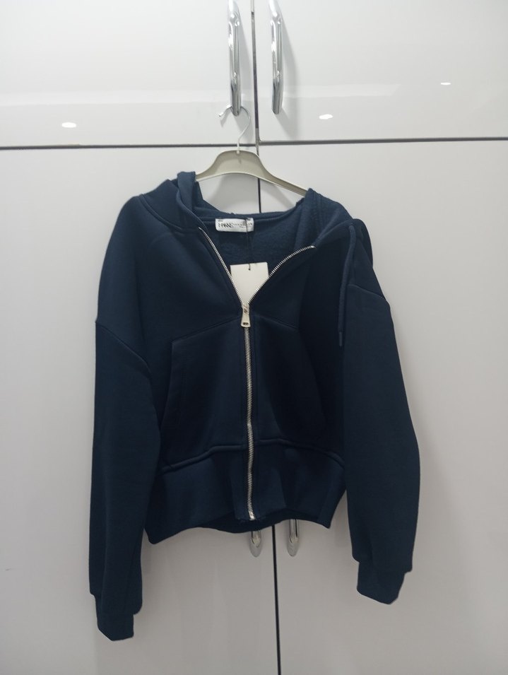 Fermuarlı lacivert Kapüşonlu Kadın Sweatshirt