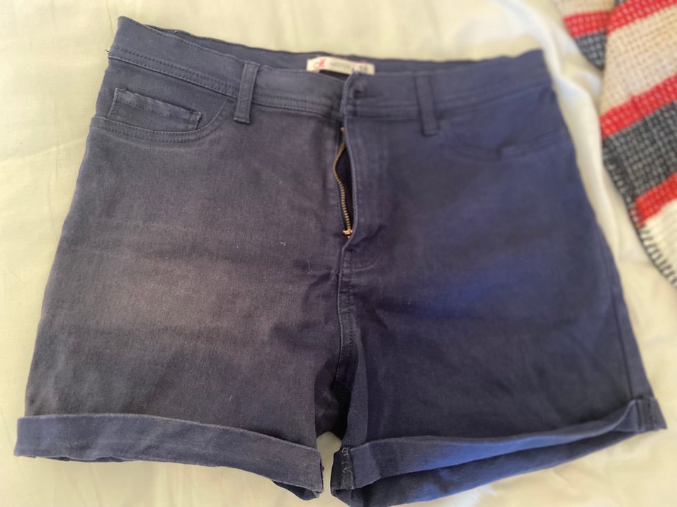 fermuarlı ve normal midi boyda, yumuşak kot kumaştan yapılmış dar kesim şort. Beden 38/M