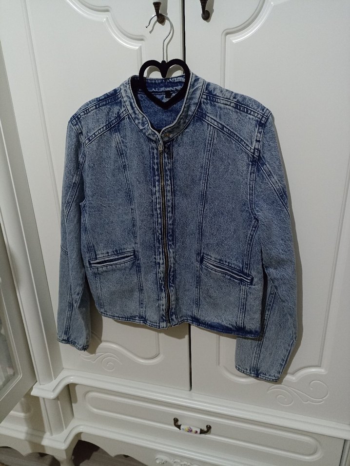 Fermuarlı ön kısmı ve çentikli yaka detayına sahip, dar kesim mavi denim kadın ceket. Uzun kollu ve normal boyda, günlük kullanıma uygun gri-mavi tonlarında. Sadece bir kez kullanıldı sıfırdan farksızdır