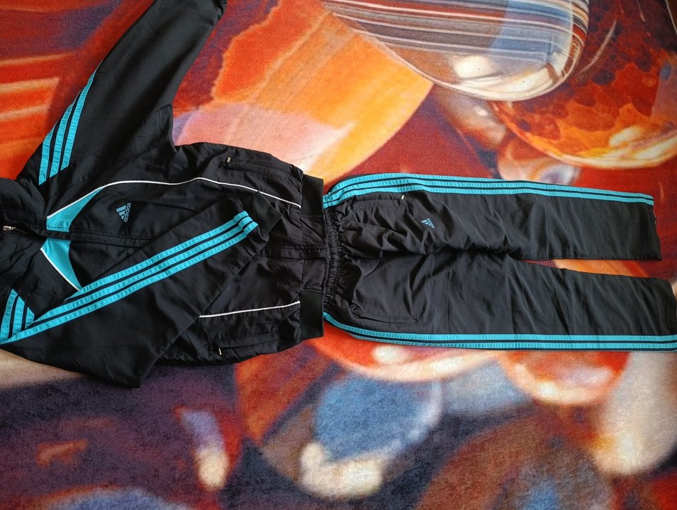 Fermuarlı cepleri ve yanlarda mavi şeritleri olan, koyu mavi renkli, yumuşak ve sıcak dokulu, dar kesim erkek eşofman takımı çok az kullanıldı hiç sorunu yok