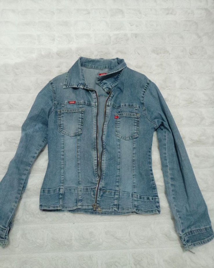 Fermuarlı, uzun kollu, mavi denim ceket. Notlu yaka ve oturaklı kesimiyle günlük kullanıma uygundur. dar kesimdir.