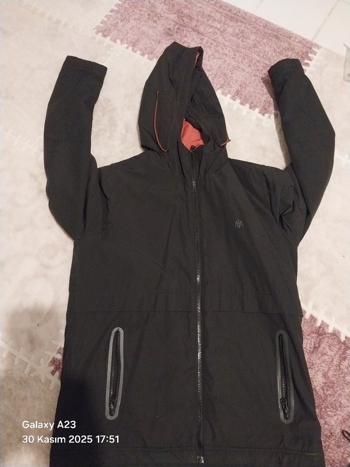 Fermuarlı mavi marka orjinal Siyah Kapüşonlu Erkek Ceket