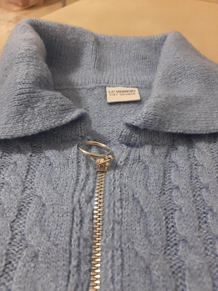 Fermuarlı mavi Triko ceket