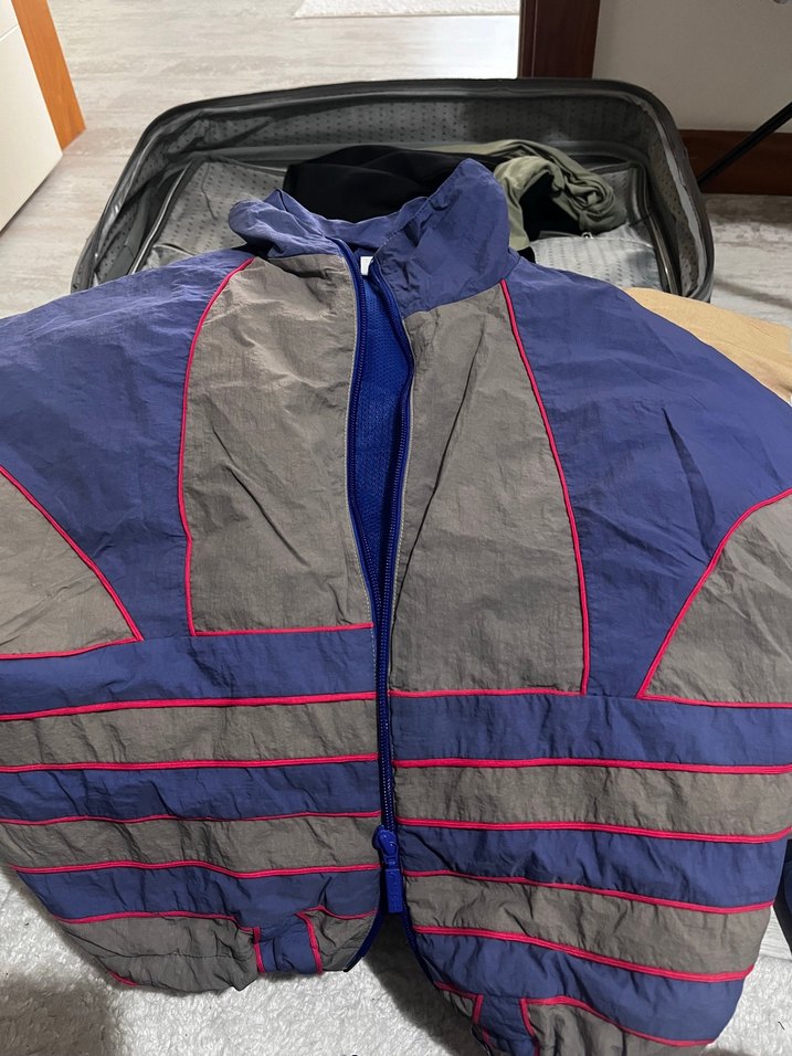 Fermuarlı, yüksek yakalı, mavi gri renkte ve oversize crop kesim kadın yağmurluk ceket . Sokak stiline uygun, beli lastikli bir modeldir.