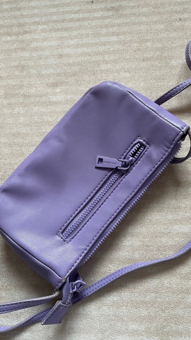 Bu pastel mor deri kadın çantası, fermuarlı cep ve minimalist tasarıma sahiptir, sokak modası ve günlük kullanım için uygundur.