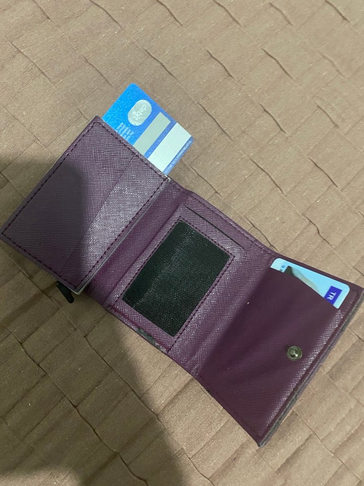 Fermuarlı kapama ve çoklu kart bölmeleri ile koyu mor deri cüzdan, minimalist tasarımı ve streetwear tarzını birleştirir.