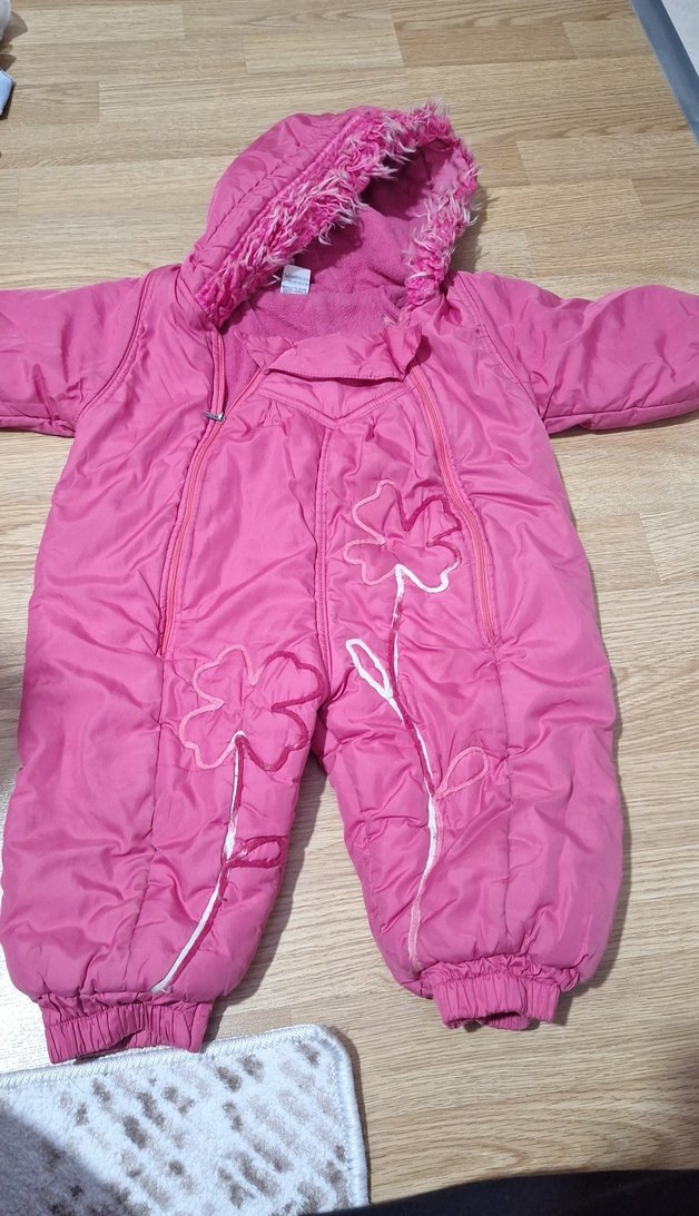 Pembe renkli bebek kış tulumu, fermuarlı ön kısım ve yakası notched lapel tarzındadır. Renkli çiçek işlemeleri ve elastik manşetleri vardır. ❄️ hıc bır kusuru yok temiz ve sıcacık bız cok memnun kaldık etikette yaş yazılmıyor ben 1 2 yaşında gıydırdım garantiye alalım 1 ve 1.5 yaş alsın