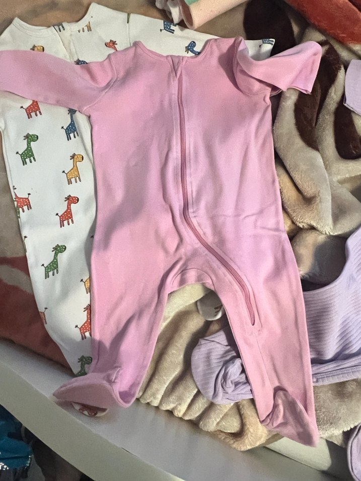 Pastel pembe renkte, önünde fermuar bulunan, yumuşak ve rahat kumaştan bebek tulumu. Bebek için konforlu ve kullanışlı.