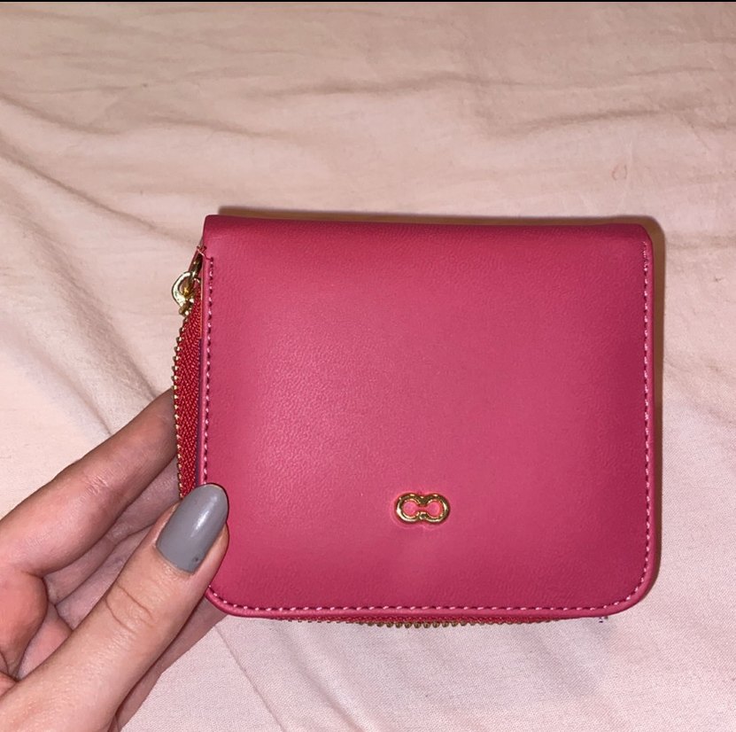 Pastel pembe deri kadın cüzdanı, fermuarlı kapanışa ve sade tasarıma sahiptir, günlük sokak stili için uygundur.