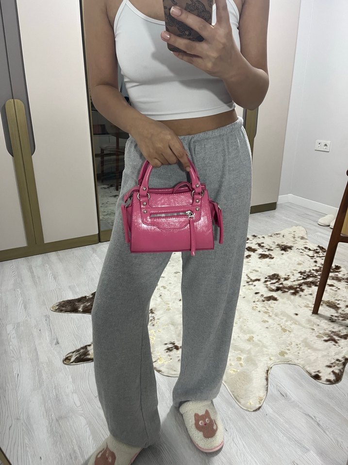 Fermuarlı Pembe Deri Kadın El Çantası
