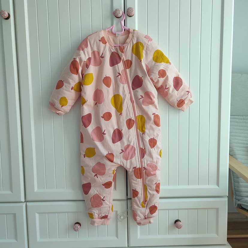 Fermuarlı, pastel pembe renkli desenli bebek uyku tulumu. Hediye geldi. Evim icin uygun olmadığından kullanmadım. İçi elyaflı, kalındır. Şu an satış fiyatı 899tl.
