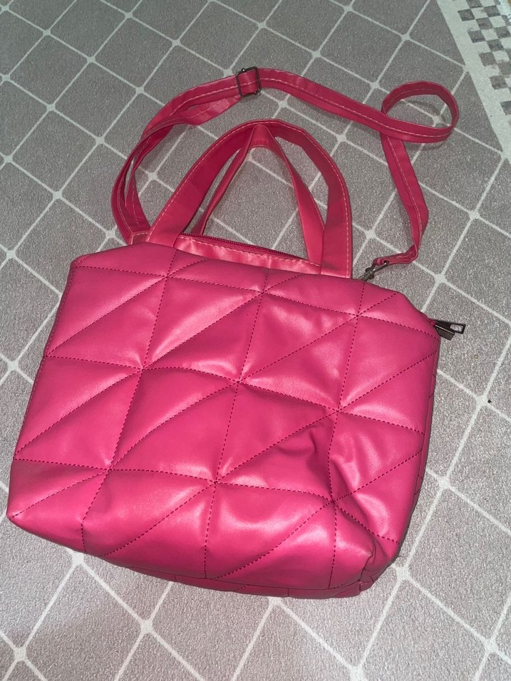 Fermuarlı kapama ve kapitone detaylı pembe kadın çantası, kısa ve ayarlanabilir uzun askıya sahiptir. Sokak stili için uygundur.