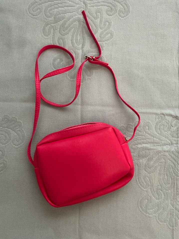 Pembe, fermuarlı kapanışa sahip, düz ve desensiz tasarımlı kadın çapraz çanta. Sentetik kumaştan yapılmış, minimalist tarzda, dış mekan sokak giyimine uygun.