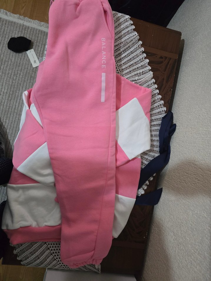 Fermuarlı cepleri olan, yumuşak sentetik kumaştan üretilmiş pembe, dar kesim kadın eşofman altı. Midi boy, günlük sokak stili için uygundur. ✨