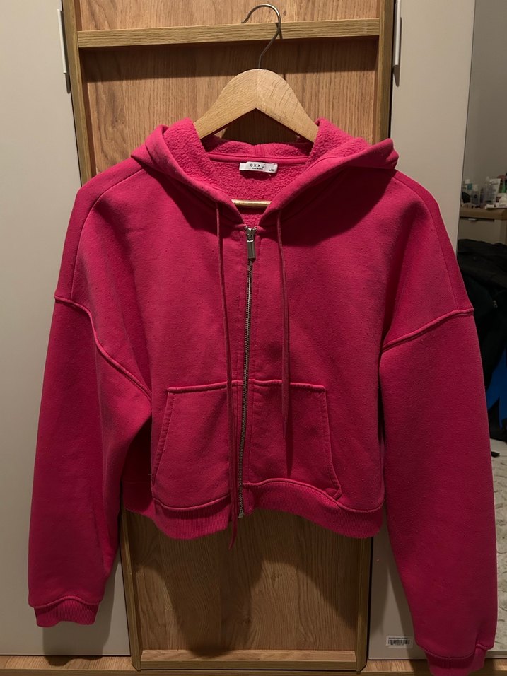 Oxxo markanin bedenleri normalden buyük yazildigi icin L olarak yaziliyor fakat L bedenlilere olmaz S veya M bedene daha iyi olur. Fermuarlı ve uzun kollu, pembe kadın sweatshirt. Yumuşak kumaştan, normal boyda, sokak stiline uygun günlük kullanım için ideal.
